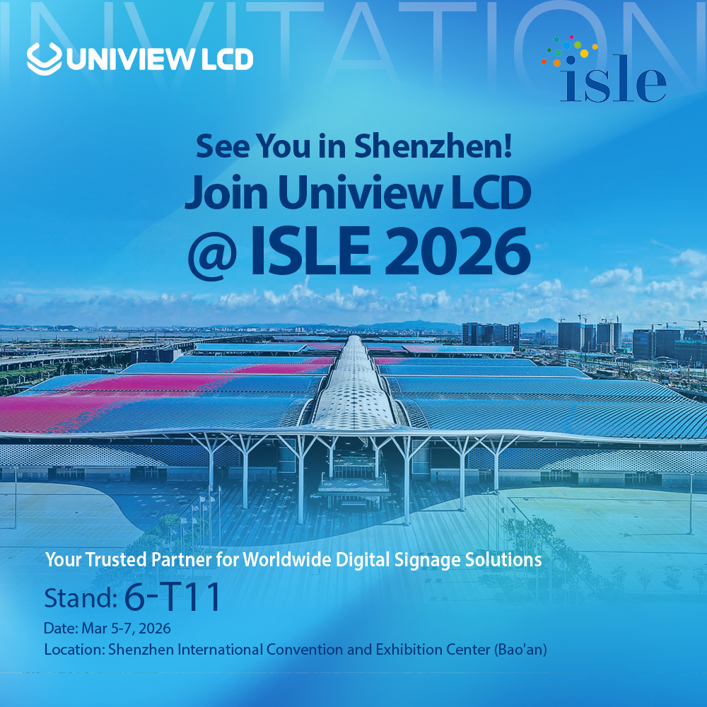 Uniview LCD, a leading global manufacturer and solution provider of commercial LCD displays, was invited to attend the International Smart Display Expo (ISLE) 2026. We will showcase our comprehensive range of innovative digital signage solutions at Booth 6-T11 from March 5 to 7, 2026, at the Shenzhen International Convention and Exhibition Center Bao‘an.